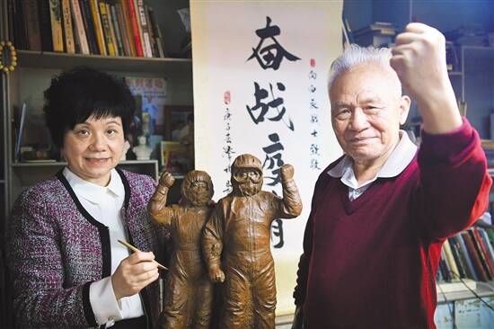 疫情期间,在新石湾美术陶瓷厂的刘泽棉工作室里,总能看到这位高龄陶艺泰斗的身影。老人家创作不停摆,他看到医护人员驰援湖北的新闻报道,万分感动,按捺不住激动心情写下“奋战疫情”的书法挂在工作室里,以此向所有坚守和冲锋的“勇士”致敬。他还指导女儿创作出一线抗疫英雄的陶塑作品。