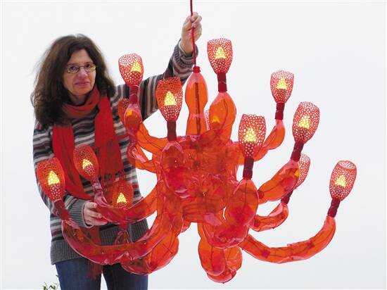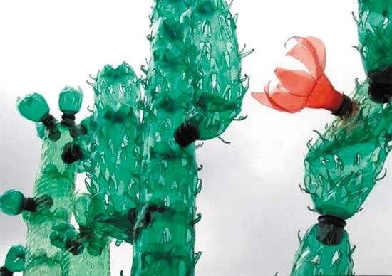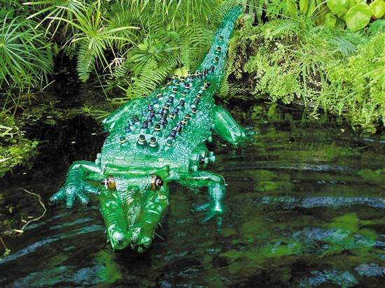 捷克著名艺术家Veronika Richterová拿手好戏就是利用废弃塑料瓶和瓶盖来制作艺术品。她从事这一行已有十多个年头了,创作过许多令人惊艳的作品。用红色可乐瓶做成的灯饰,挂在客厅里完全没有违和感;用绿色雪碧瓶做成的大鳄鱼,放到小河边,看上去它似乎都要游动起来;还有用各色瓶子做成的仙人掌、仙人球,拿来装饰窗台一定美极了……只要发挥想象力,这样的作品或许也可以出现在你家的客厅吧?不妨收集你手头的塑料瓶,也自己动手试一试。