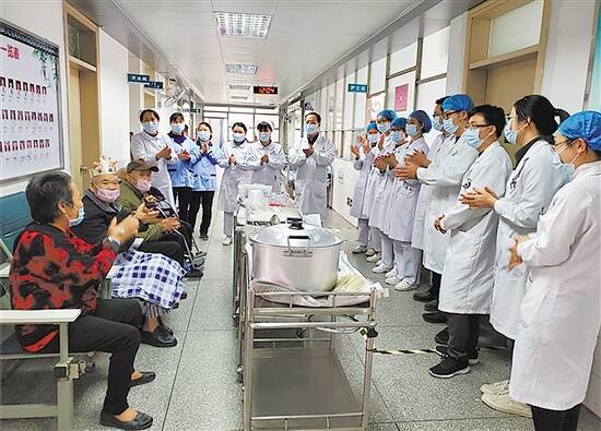 医护人员在病房为81岁老人过生日