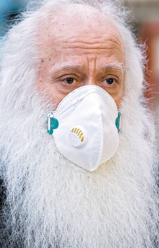 4月29日,在伊朗德黑兰,一名商贩戴着口罩等待顾客 新华社发