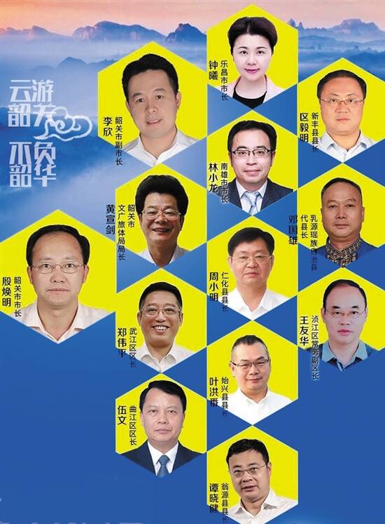 随着直播的深入,直播当天,由韶关市市长殷焕明、副市长李欣、文广旅体局局长黄宣剑、武江区区长郑伟平、曲江区区长伍文、乐昌市市长钟曦、南雄市市长林小龙、仁化县县长周小明、始兴县县长叶红番、翁源县县长谭晓健、新丰县县长区毅明、乳源瑶族自治县代县长邓国雄、浈江区常务副区长王友华、乐昌市委常委宣传部部长林砂胜、南雄市副市长杨耀轩、乳源县副县长魏卢捷、曲江区委宣传部部长唐继华、新丰县副县长于吉杰共计18位市县长组成的“最强主播团”,不但带领全网455万观众在线感受了韶关市的各大景区、地道特产、风味美食、酒店住宿、人文风貌的韵味,更在这些网友心里种下了对韶关美景的向往。
