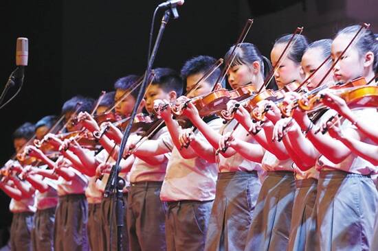 学校引进珠江交响乐团资源,组建了两百多人的弦乐团