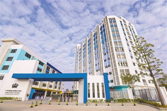 四月的羊城,艳阳高挂。距离番禺南村镇七星岗森林公园2公里的地方,一座蓝白相间主题色调的学校正在进行校内工程建设,整体建筑简洁清新、通风开阳。课室窗明几净教具一流,实验室配置齐全,宿舍温馨舒适……这座占地约43亩的学校,便是国际知名教育集团诺德安达落户广州的第一所双语学校。