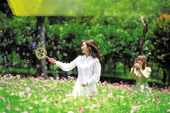 羊城晚报讯 记者严艺文报道:粉白色波斯菊小巧清新,上百种玫瑰火红盛放……5月将至,广州白云山脚下的云台花园特别举办波斯菊主题花展,10万株波斯菊盛放,带来一片粉色花海。