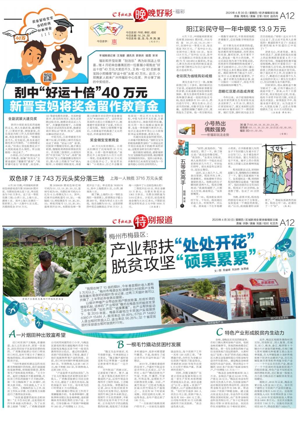 第A12版:晚晚好彩·福彩;特别报道