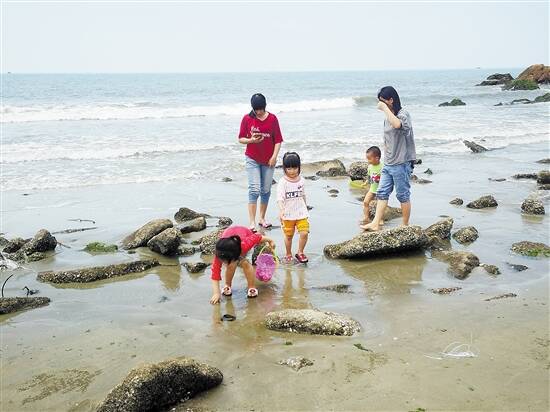 记者留意到,游客以亲子游居多,有的在踏浪,有的在赶海,有的在挖沙……每靠近一个家庭都能听到欢声笑语,其乐融融。来自佛山市的游客陈先生说,孩子今年3岁,受疫情影响,妻子带着孩子一直没有出过家门,趁着长假出来旅游。没有想到,前来海边的游客较少,有种“私人定制”的感受。