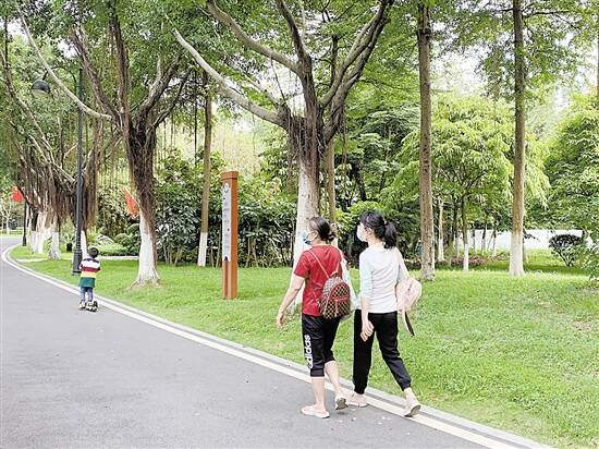 1日下午,记者来到海珠湖公园,只见公园里十分安静,人流较为分散,游览环境堪称舒适,游客多数为带小孩的家庭客人,不少小朋友在悠闲地玩滑板车。