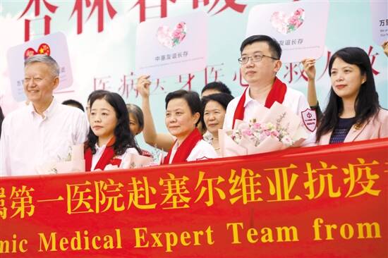 郭禹标、熊艳教授回国后,中国援助塞尔维亚抗疫医疗专家组3名专家再次启程。这三名专家都来自中山一院,其中成守珍、刘大钺两名专家参加过支援武汉抗疫医疗队,唐可京教授则是中山一院新冠肺炎防治专家组成员,他们带着丰富的实战经验奔赴塞尔维亚,与第一批队员无缝对接。