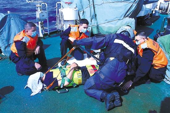 中南舰接到救援命令后,迅速启动应急预案,火速前往事发海域。经4个多小时全速航行,于13时许抵达琼儋渔19318渔船附近海域,并及时与该船联系伤员过驳。