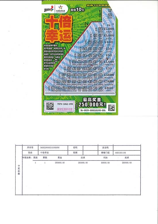 开启“财富之门” 赢取“十倍幸运”!近日,广东购彩者即开票中奖中不停,其中,广州的两位幸运儿以及一位中山的购彩者,均收获了高达25万元的一等奖,真是可喜可贺。