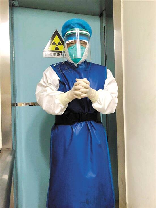 介入手术具有特殊性,微创的优势取决于放射性仪器的运用,因为在射线下进行操作,术者日常要穿戴大约10多公斤重的防护铅衣、铅围脖、铅帽,铅眼镜。而为了给陈伯进行手术,医务人员还要穿上二级防护中的防护服、面屏、靴套,外层还需再穿上无菌一次性手术衣。数层包裹,加上不能开启中央空调,闷热程度加重至极,而双层橡胶手套对于精细的介入操作也是很大挑战。