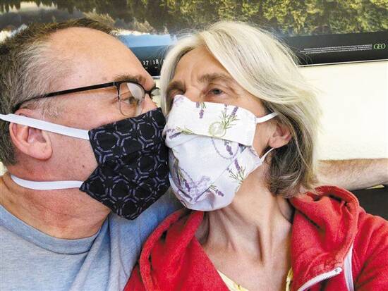樱木和丈夫,他们戴的是手工缝制的口罩