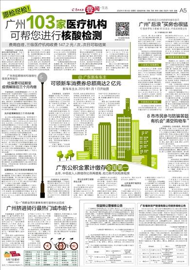 羊城晚报讯 记者林清清、通讯员穗卫健宣报道:为全力推进复工复产复学,目前,广州地区有103家医疗机构已设置复工复产复学核酸采样室(点),愿检市民可携带身份证等身份证明证件,按照方便、就近原则,前往相关医疗机构自费接受新冠病毒核酸检测。有需求的单位、学校也可以与相关机构预约后,组织员工或学生集体前往检测。个人检测核酸一般当天检测,次日可以拿报告。检测费用需自理,在三级医疗机构为147.2元。市卫健委表示,鼓励自愿接受核酸检测人员,通过医院微信公众号、医院APP、网站等多种方式预约检测;到达医院后,请按照医院工作人员指引,有序排队等候,以减少人员聚集。医院可通过多种方式发放检测结果。广州市红十字会医院表示,采样后24-48小时内,可在该院微信公众号查询结果。如需纸质报告,可在门诊大厅客服中心打印,或在采样时选择纸质报告快递上门服务(费用到付)。
