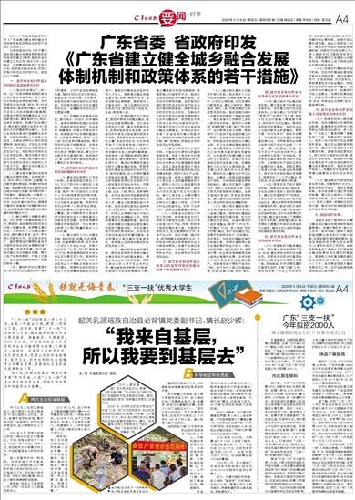 各地区各部门要深刻认识建立健全城乡融合发展体制机制的重要意义,完善协调机制,强化分工合作。省有关部门要深入落实新型城镇化战略和乡村振兴战略,加强统筹协调和跟踪督促。各地区党委和政府要负起主体责任,认真抓好各项工作落实。省将在积极推进广清接合片区国家城乡融合发展试验区建设的基础上,根据珠三角和粤东粤西粤北地区发展阶段及特点,各选择1-2个市、县开展省级城乡融合发展试点工作,及时总结提炼典型经验加以宣传推广。