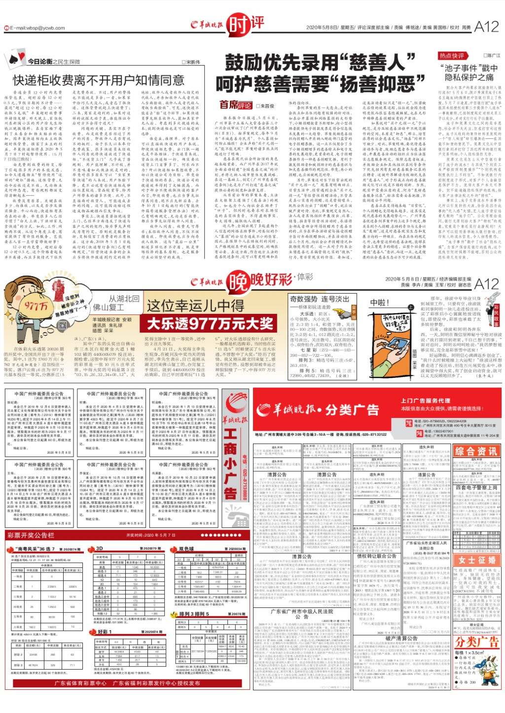 第A12版:时评;晚晚好彩·体彩;广告
