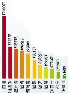 截至北京时间10日21时部分国家新冠肺炎病例数 制表/刘栩
