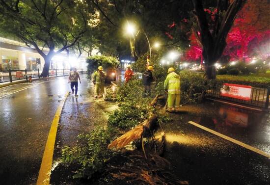 昨晚,侨光路有树木倒下,绿化抢险队及时处理