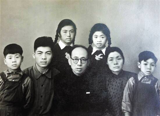 1952年的全家福。 左起:王则柯、王兆凯、王美娜、王起、王丽娜、徐碧霞、王则楚