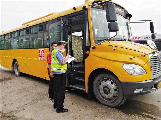 针对大部分校车受疫情影响停驶时间较长、可能存在安全隐患的情况,5月11日开学前夕,广州交警联合各级教育、交通等相关部门,分批次、有序对全市4445辆校车全覆盖进行隐患大排查,重点检查校车车辆状态、标牌标识、随车安全设施等内容。