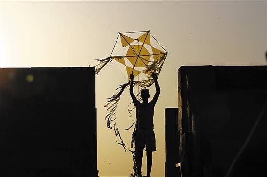 5月11日,开罗一名男子在楼顶准备放风筝。受新冠疫情影响,不少埃及民众选择在自家窗口或住宅楼顶放风筝 新华社发