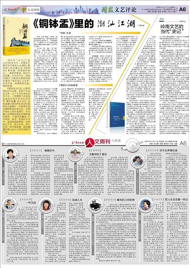 《铜钵盂》五部,大笔挥洒自元代以降,历经千年历史之经,以十七万封侨批幸存于世,上至精英下达草民芸芸众生的生存与生活为纬,累积层叠,洎于近世,这段波澜壮阔的侨批历史和铜钵盂内接粤沪、外联南洋契约精神铸造的乡村史,尽管为现代人陌生或遗忘,但它融入血液根深源远的硬核遗响犹存,不被洪流裹挟,不论战争、革命,抑或和平年代,虽搅得周身寒彻,仍然屹立于世,圣火长传。郭小东用一种诗情画意、提按藏露把潮汕这片江湖写得荡气回肠。