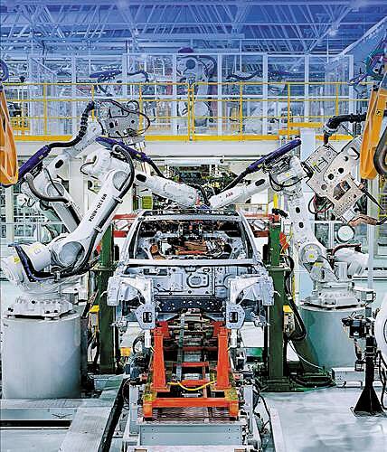 冲压车间对标行业一流水平规划建设,采用先进的数控液压拉伸垫、直线七轴搬运机器人、德国进口数控成型装备等设备建造了6600吨大型全自动冲压生产线。同时,冲压车间采用了零库存和直线物流的设计理念,高速机器人搬送系统,生产节拍可达到12件/分钟,在AGV机器人的配合下,冲压件成品会被快速自动传送至焊装车间,提升了生产效率。