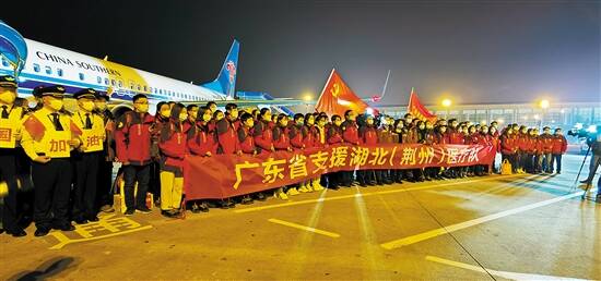 2月10日,国家卫生健康委公布方案,广东对口支援湖北荆州市。当晚,广东首批援荆医疗队伍108人连夜出发奔赴荆州。