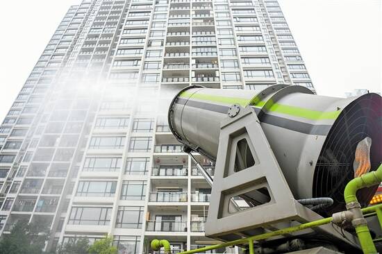 2月12日,广州番禺的祈福新邨开展社区公共区域消毒工作 羊城晚报记者 梁喻 摄