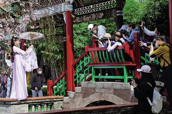 春色满园关不住。不少游客到广州宝墨园游览拍照羊城晚报记者 邓勃 摄