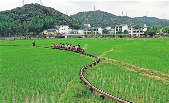 风光旖旎的流溪河旁,小火车开向绿油油的稻田 羊城晚报记者 邓勃 摄