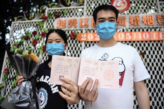 有情人终成眷属,很多年轻人领证结婚 羊城晚报记者 梁喻 摄