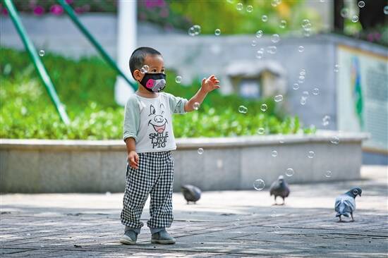 母亲节,不少妈妈带着孩子在广州天河公园享受亲子时光 羊城晚报记者 梁喻 摄