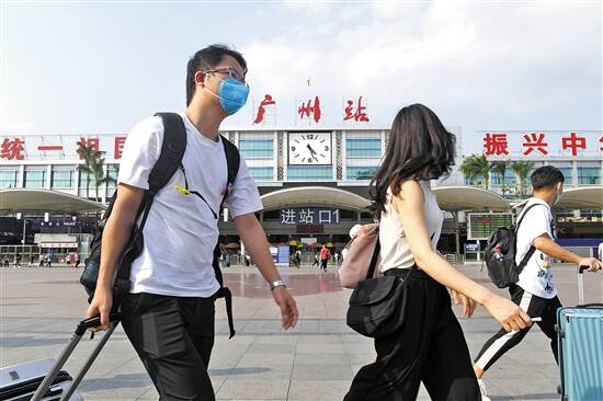 “五·一”假期最后一天,广州火车站返程旅客增多 羊城晚报记者 林桂炎 摄