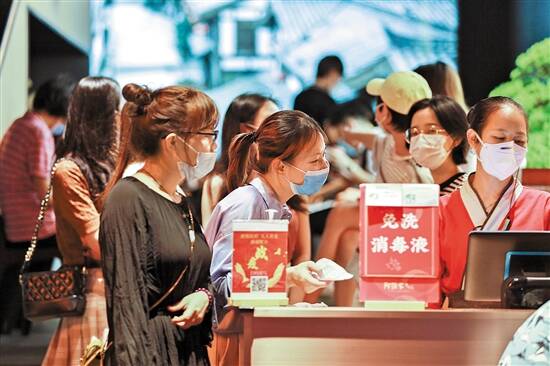 广州天河商圈商家门口大排长龙 羊城晚报记者 宋金峪 摄