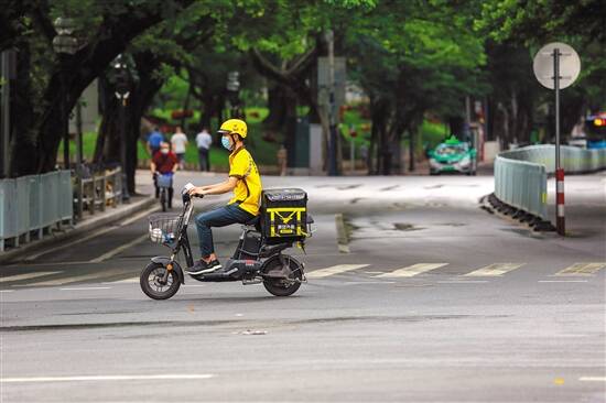 外卖小哥送餐前都需测体温 羊城晚报记者 宋金峪 摄