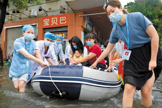 22日凌晨,一场暴雨突袭佛山。佛山市妇幼保健院门口及部分院区被水浸。为方便患者就诊,医院在门诊大厅外设置临时缓冲区,并出动三台接送车和一艘冲锋舟,免费提供纸巾及相关用品。据统计,截至当天上午10点左右,冲锋舟共运送300多人次。市民刘小姐约了早上产检,医院工作人员将她从车上接下来,直接送上冲锋舟进入医院。