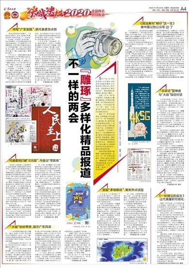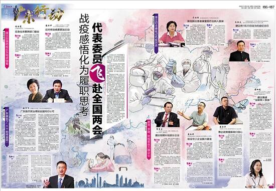 5月20日,住粤全国政协委员和在粤全国人大代表启程出发当天,广东“抗疫”刚好满4个月。这一天,《羊城晚报》同步在报、网、端推出12个整版《战疫·广东行动》特刊和H5作品,展现了战疫中的“广东高度”“广东速度”“广东力度”“广东精度”“广东温度”“广东韧度”“广东尺度”,得到了在粤全国人大代表和住粤全国政协委员的高度评价。全国人大代表黄细花点赞特刊:“展现了我们代表、委员们的心声和建议,对我们履职是一个很大的鼓舞。特别棒!”