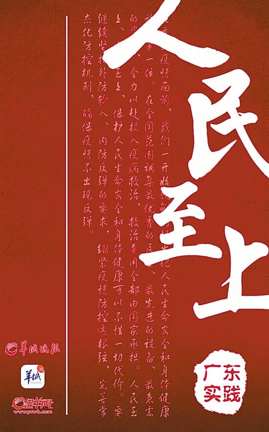 5月24日起,《羊城晚报》报、网、端同步推出《人民至上》专题报道,围绕“全方位守护人民健康 多措并举增加人民福祉”等主题,记录了党的十八大以来,广东在各个领域,尤其是抗击新冠肺炎疫情中,“人民至上、生命至上”的实践行动。