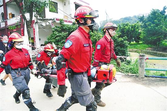 “报告区总值班室,刚才金坑村发生‘地震’,‘震感’强烈,有房屋‘倒塌’,人员‘被困’,请求救援!请求支援!”“收到!请全力组织村民自救互救,我们立即派出救援队伍。”