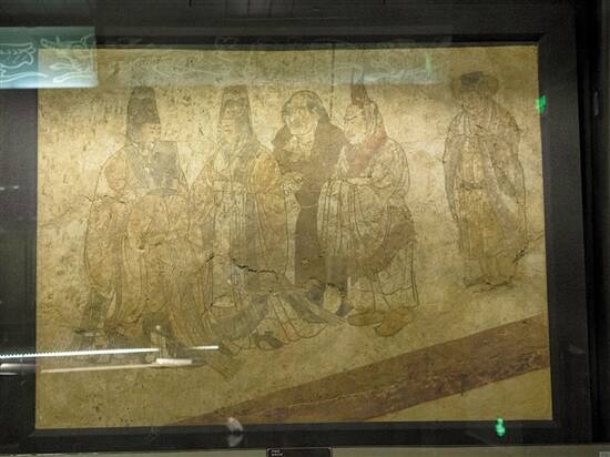 此外,把墓葬壁画揭取运回博物馆也不是件易事。先要对壁画进行烘干、除尘,还要对裂缝和空臌进行修缮。之后要蒙布固定,就是将可溶胶均匀涂抹在壁画上,然后蒙贴上麻布,并制作相应尺寸的木面板顶盖在麻布上。经过这样的处理,壁画与麻布以及木面板便成为一个固定的整体。随后,用锯、铲等把壁画割离墙体。搬回到博物馆后,还要对壁画进行精细的处理后才能展出。