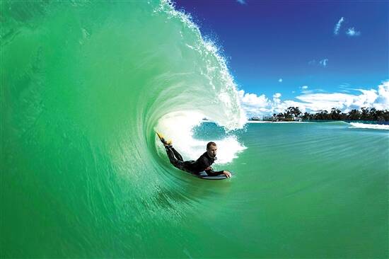 想冲浪又害怕大海的神秘莫测,很多人都更喜欢到游乐场里去寻找冲浪的感觉。在长隆水上乐园等大型游乐场里,想必很多人已体会到了人工造浪的乐趣。而这种巨型造浪池其实又有所不同,在这里制造出的“巨浪”,是可以让人真正像在海边一样玩滑板冲浪的。