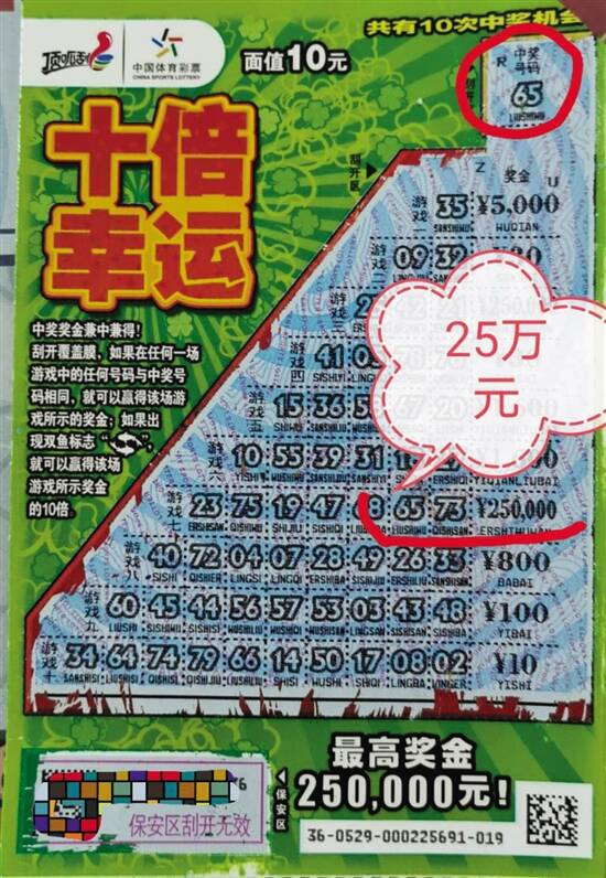 男子出差喜中“十倍幸运”25万元