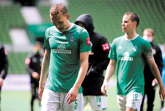 主场输球,不来梅球员难掩失落 图/视觉中国