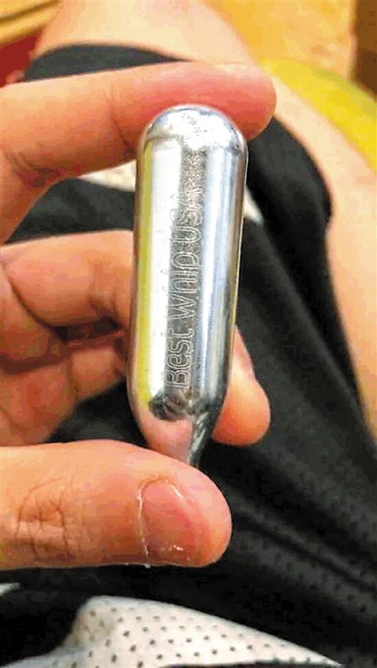 笑气,学名一氧化二氮,广泛应用于食品、医疗等行业,属于危险化学品,有很强的成瘾性,吸入后人会产生幻觉、不自觉发笑。