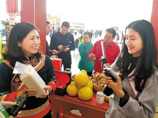 连山壮族瑶族自治县县长冯红云(左)客串直播,推介连山优质农产品(资料图)