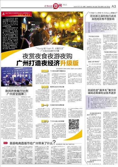 12日,《广州市夜间消费报告》(以下简称《报告》)正式发布。《报告》内容基于去年12月羊城晚报组织的“广州市居民夜间消费习惯”调查,同时结合互联网平台数据,由“味觉消费”“触觉消费”“视觉消费”三部分组成,分别呈现了广州夜间餐饮、商业购物、旅游观光三方面的情况。