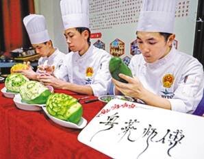 广州白云工商高级技工学校学生现场展示粤菜制作手艺