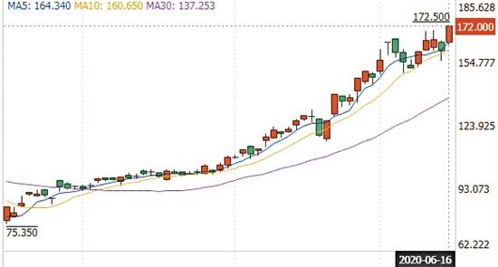 在这之后,美团点评的股价持续上涨。6月3日,美团点评股价涨幅超过8%,总市值突破了9000亿港元,再创市值新高;6月16日,美团点评股价冲高至172.5港元/股,报收172港元/股,这意味着美团点评自5月25日市值突破1000亿美元(8012亿港币)以来,市值在短短21天内暴涨近2000亿港元。