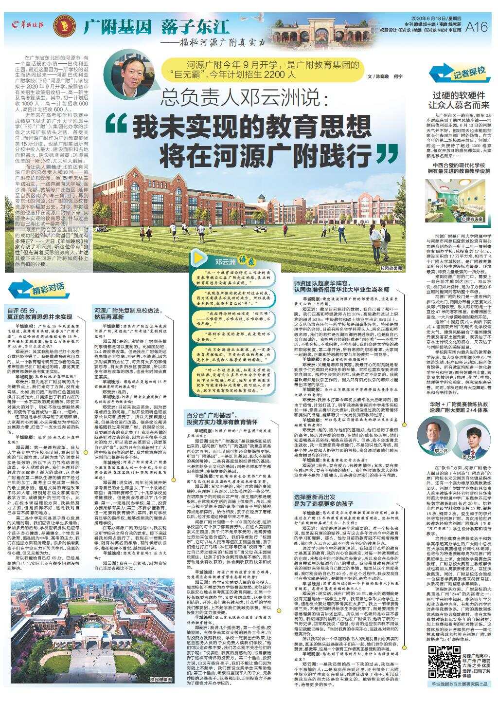 总负责人邓云洲说:“我未实现的教育思想将在河源广附践行”