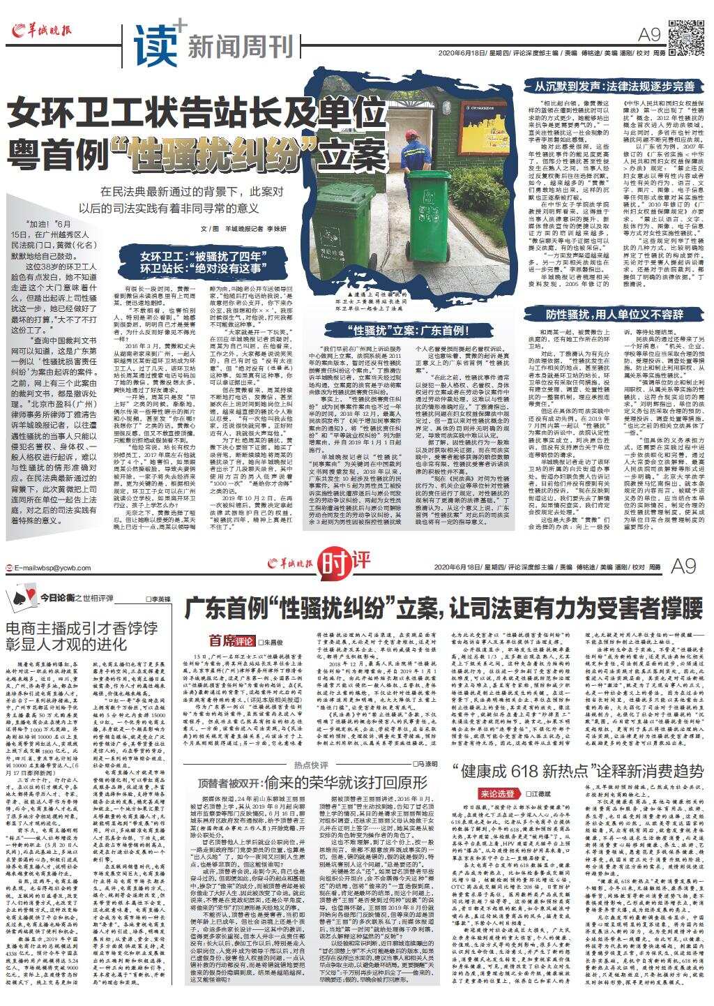 女环卫工状告站长及单位 粤首例“性骚扰纠纷”立案